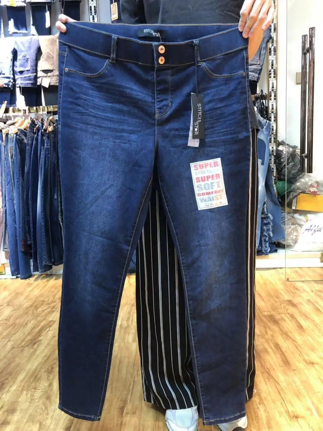 A: Our stock jeans are from the rest of customer's regular orders. The material cost has been accounted into the orders, so for the rest of orders, we just need account the working cost for lathing, washing and package, therefore, the price for the stock jeans is 30%-50% lower than normal orders, while the quality is the same as our regular orders. As you know, it is impossible to produce such good quality products with such low price, thus our stock jeans have the most competitive price.