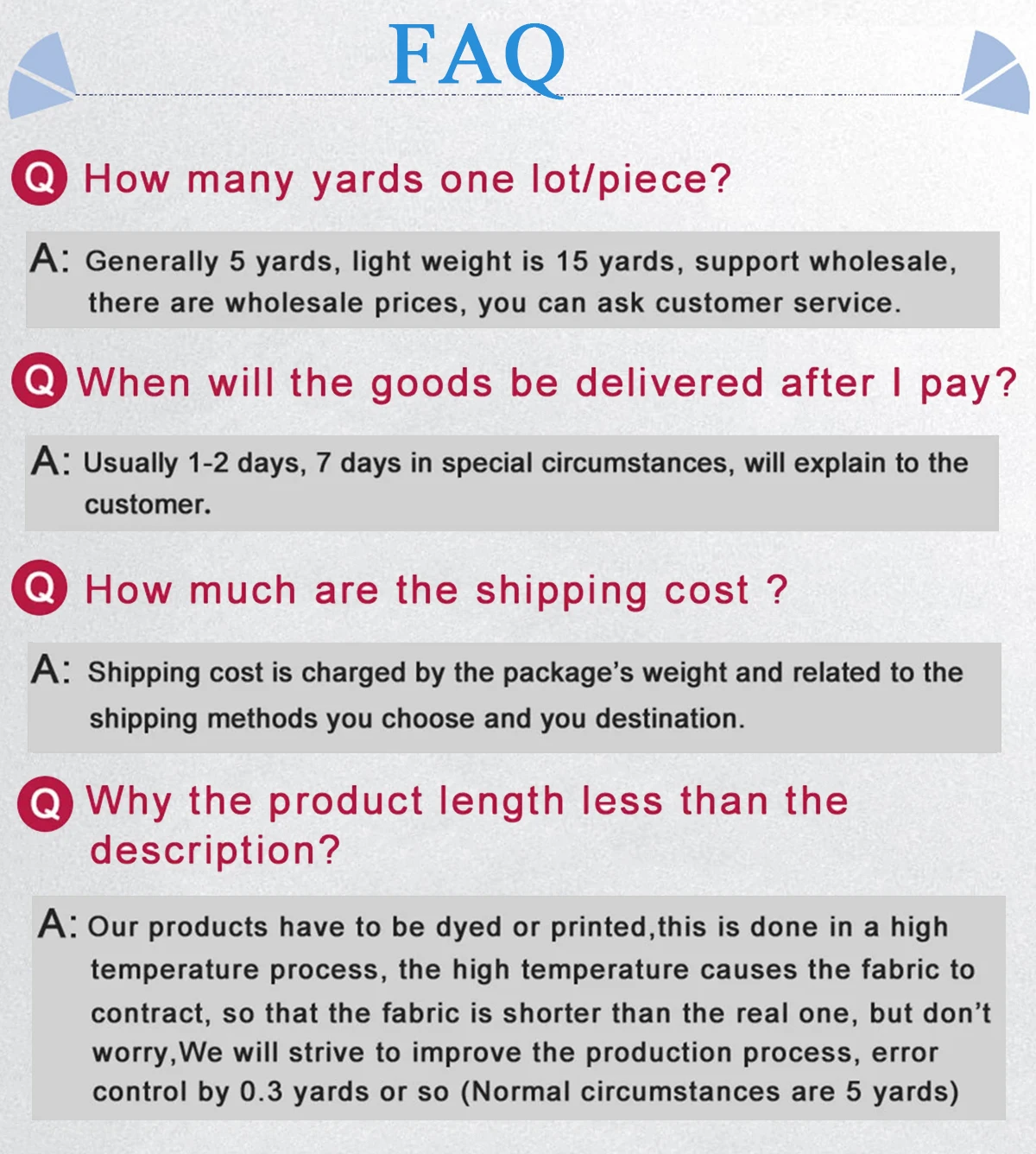 Packing | 5 Yards/Poly Bag, 15 Yards/Bundle, 60 Yards /CTN (Woven Bags or Carton) |