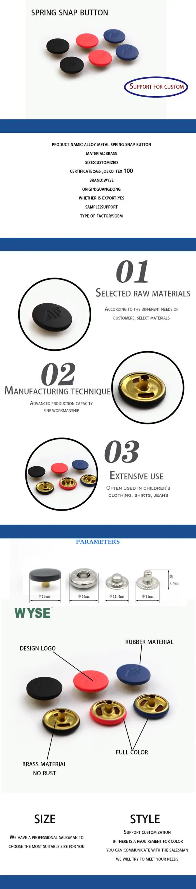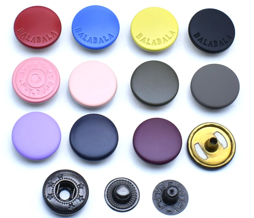 Product Name | Custom made engraved logo colorful rubber painted spring snap button |