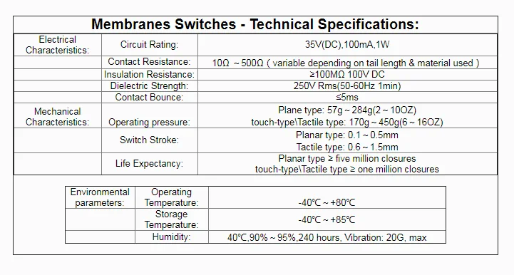 Contact resistance | 200 ohm maximum with 150 ohm typical |