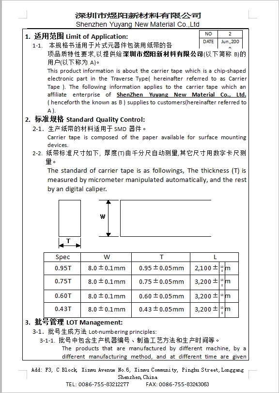 Shenzhen Yuyang New Materials Co., Ltd. has been engaged in the design, development, production and sales of electronic components. The main products are LEDs, light sources, SMD LEDs, SMD carrier tapes, LED carrier tapes, IC carrier tapes, crystal carrier tapes, Connector carrier tape, inductor carrier tape, capacitor carrier tape, upper cover tape and rubber disk, etc., the product specifications are 8mm, 12mm, 16mm, 24mm, 32mm, 44mm, 56mm, 72mm, 88mm, etc.; at the same time, operating and various specifications The carrier tape is matched with the upper cover tape product and various types of rubber plates. Yuyang products are manufactured according to the international standard "EIA-841-C" and have passed the ISO9001-2008 international quality management certification system. Yuyang adheres to the principle of enthusiasm, rigor and professional service. Adhering to the "quality first, excellence" service purposes, for the majority of new and old customers, providing quality and thoughtful service