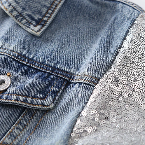 Детская одежда модная джинсовая куртка с блестками и рукавами для