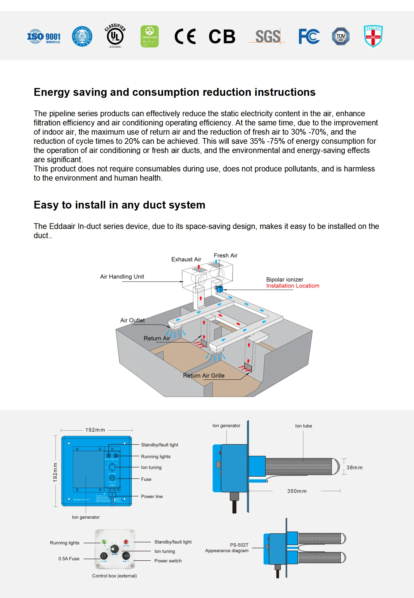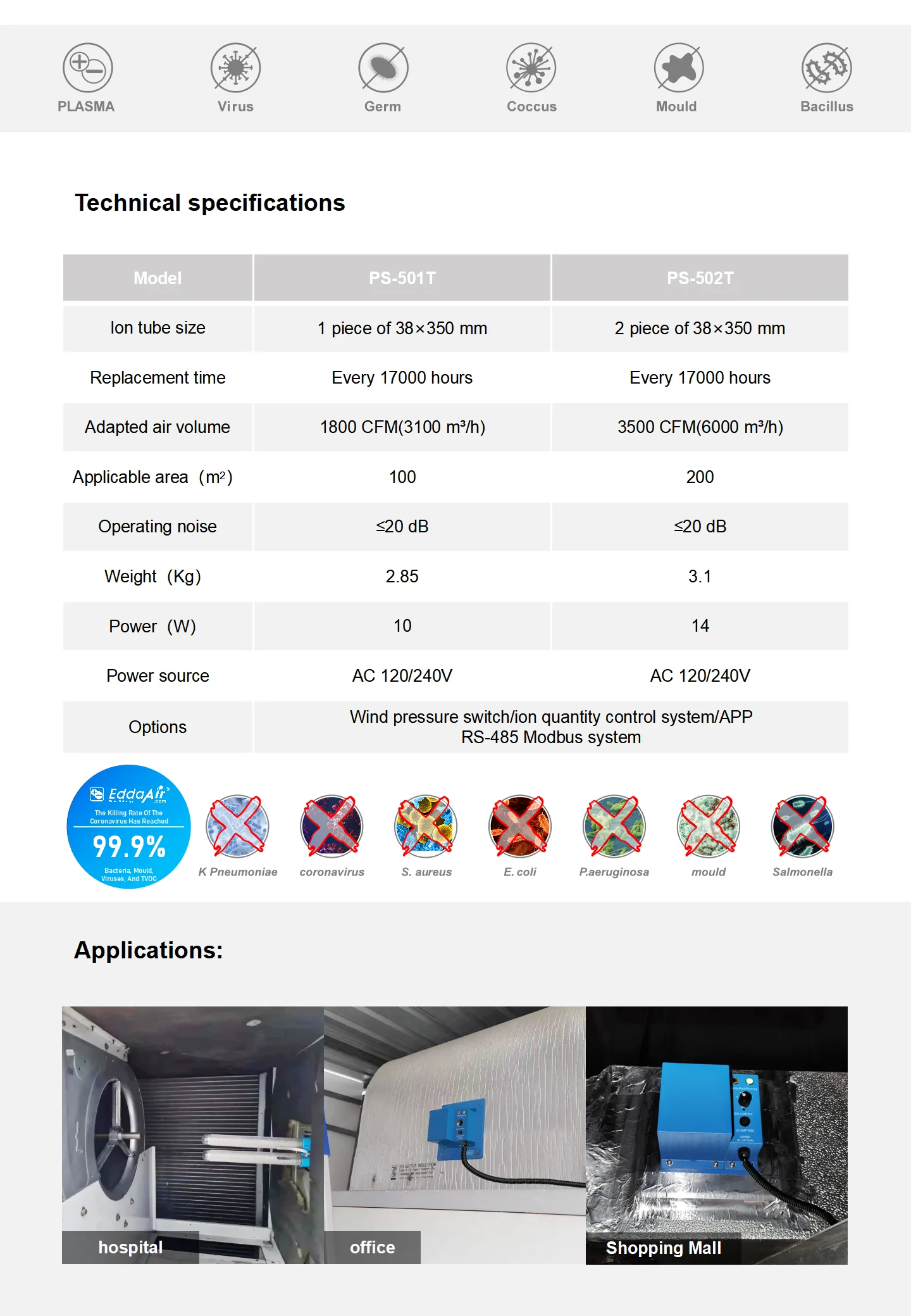 Although the central air conditioning in food production workshops has filtered the air, many microorganisms such as staphylococci, bacilli, molds and various viruses are still present in the air for various reasons. Food products are directly exposed to the air, so it is extremely important to keep the air clean and sanitized. Chemical spraying or fumigation methods may contaminate the foodstuffs, while traditional UV lamps and ozone sterilization methods have great limitations in terms of space and time of use, and can cause severe oxidation of production equipment in the workshop when used for long periods of time.