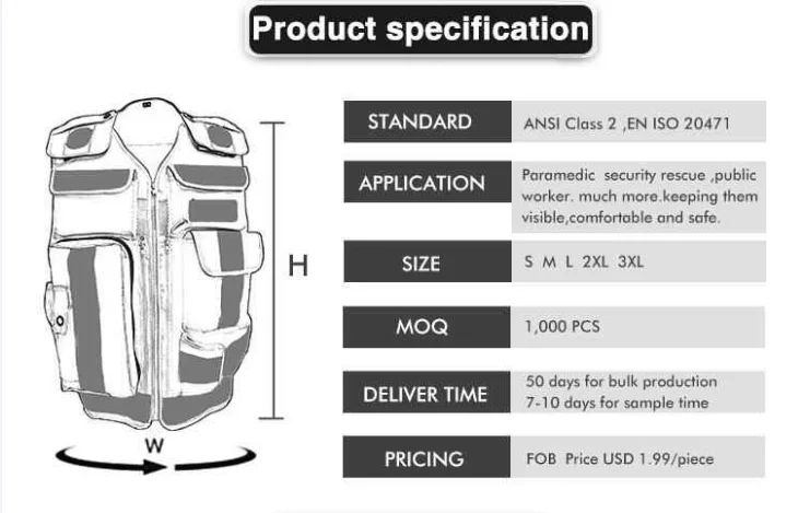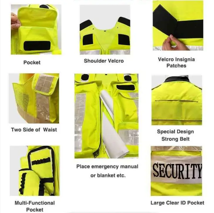 Product Type: | Hi vis reflective safety adjustable waist and shoulder polyester paramedics vest EMS vest | ||||||
