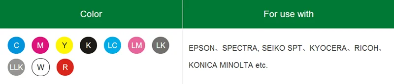 Подходит для принтера: | DTG с принтера Epson , Ricoh, Konica, звездного, Kyocera головки |