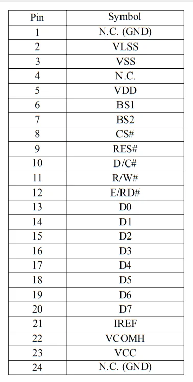 Pin Assignment(2.4/2.42oled,Pins:24P)