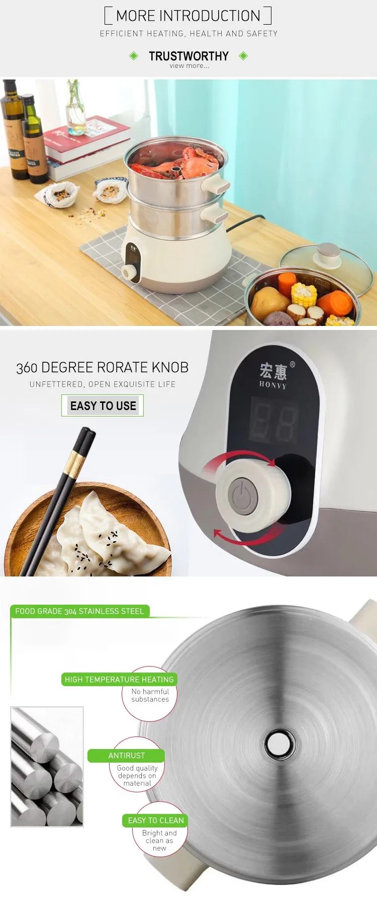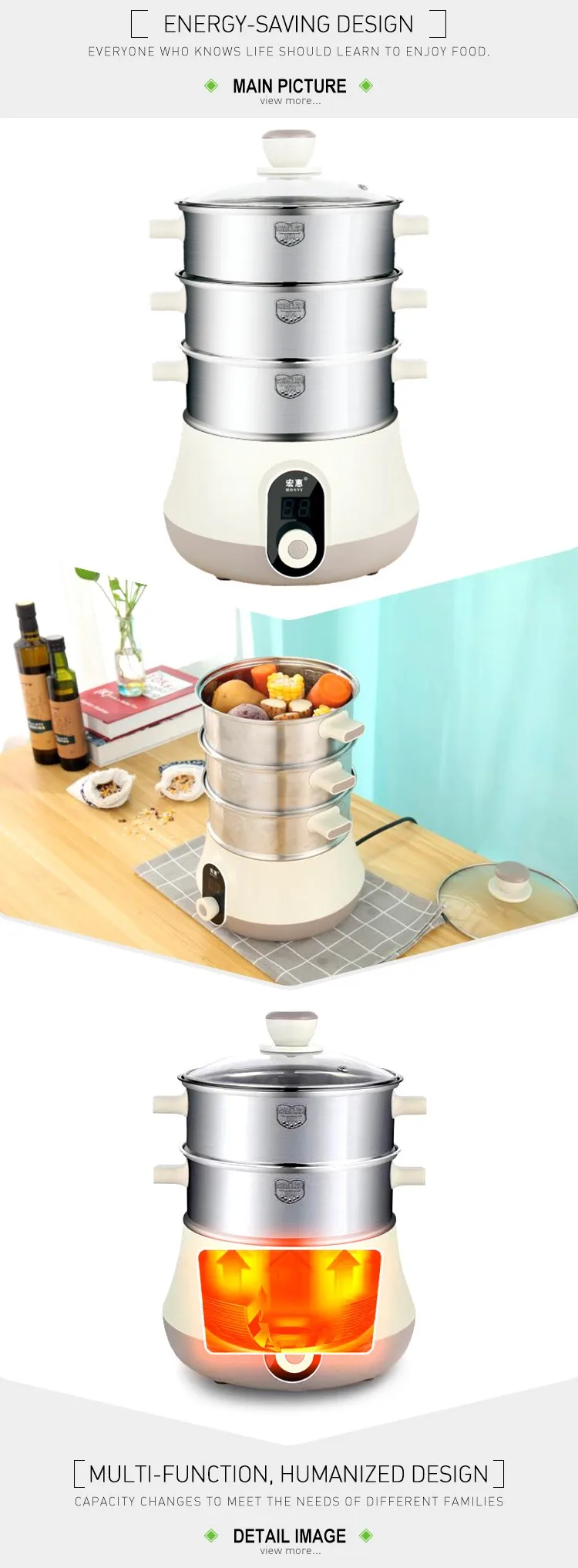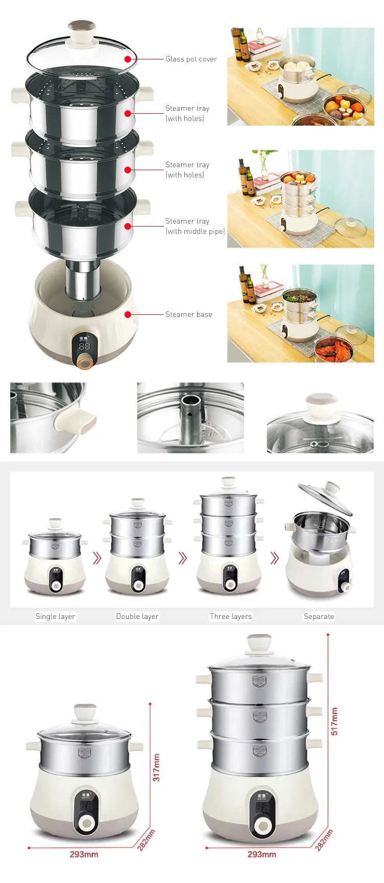 * multi-tiered design allows you to separate and simultaneously cook several types of food