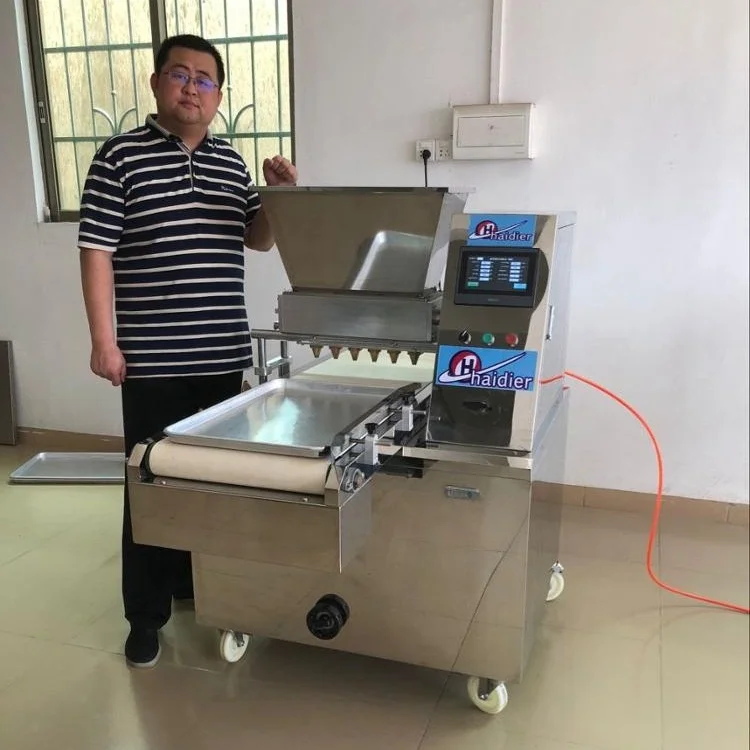 The PLC control cookie machine is an new kind of cookie shaping machine, which are automatically controlled. you can set the cookie forming ways(depositing or wire cut),working speed,space between cookie ,etc by touch screen.we have dozens of nozzle type for choice,or we can customize the special nozzles as your requirements.this machine used SERVO motor.
