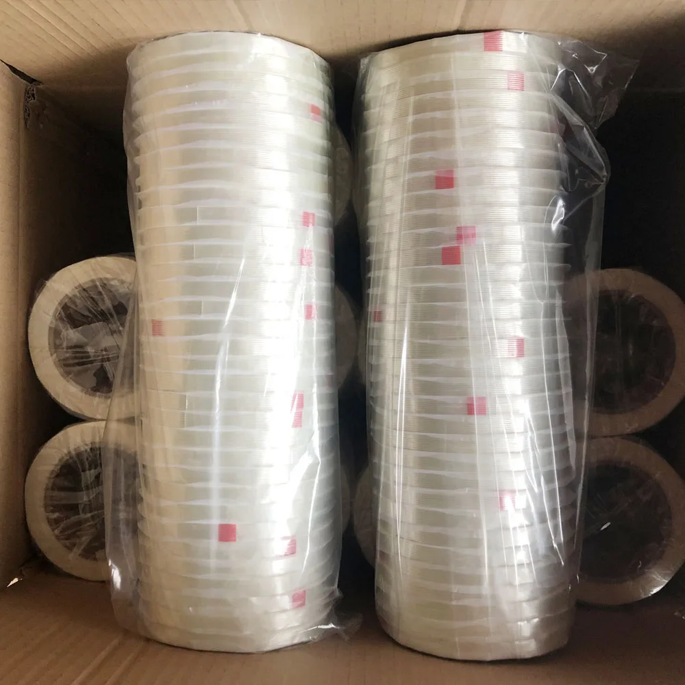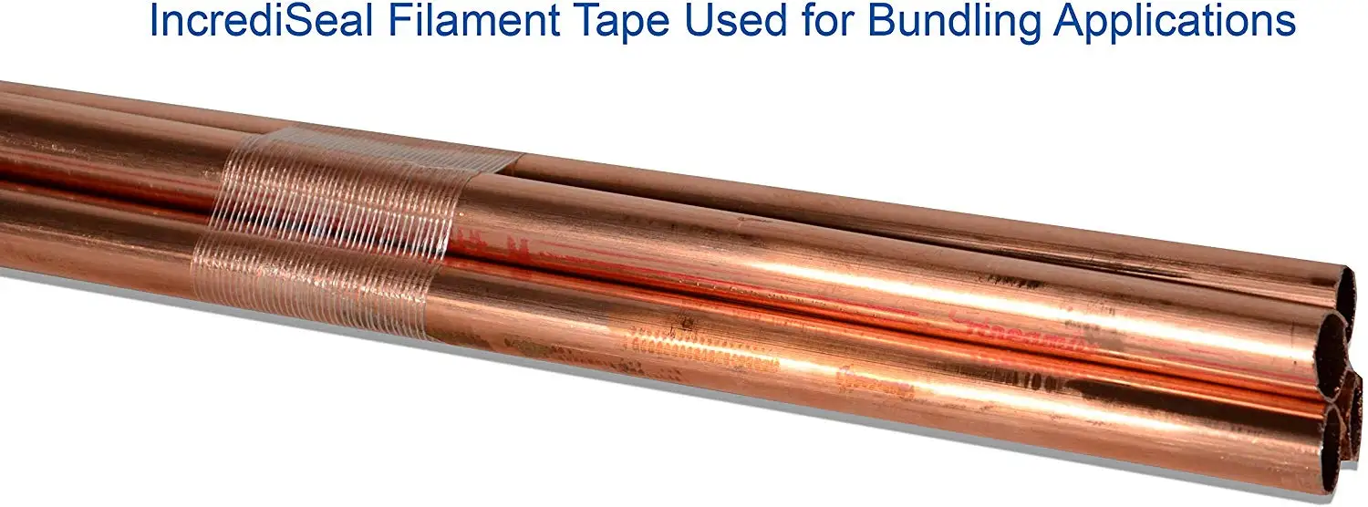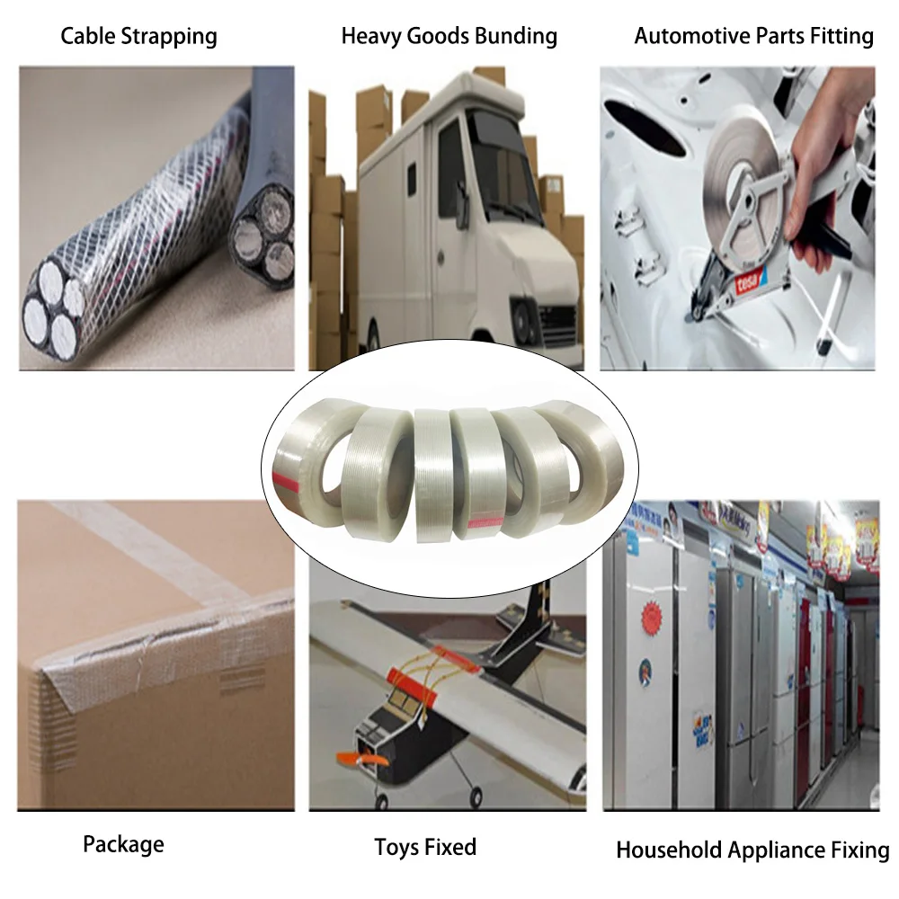 Filament Tape is made of pet film, fiber and rubber glue. its own polypropylene backing provides excellent resistance to nicks, abrasion, moisture, Weatherproof, moist resistant, UV and temperature resistant, suitable for most repairs, green house and outdoor use.