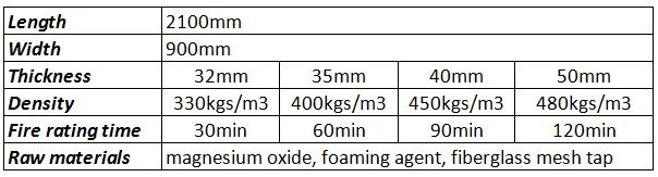 Плотность: 300 ~ 500 кг/м3, легче, чем традиционный материал ядра пожарной двери.
