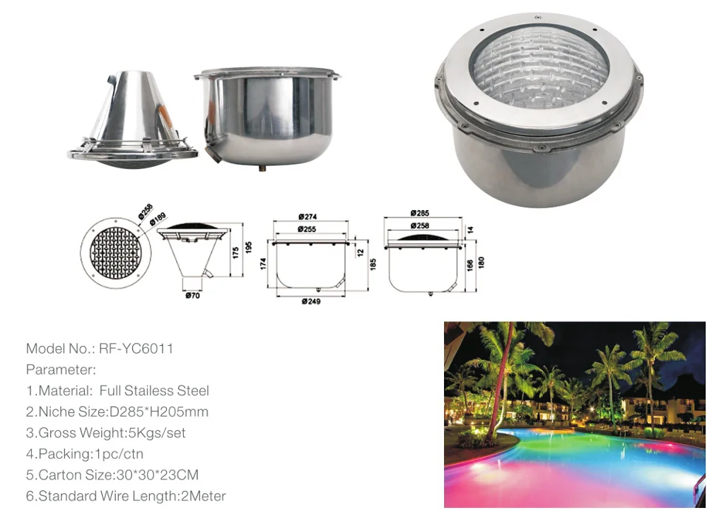 Материал корпуса PAR56 для вариантов: | Анти-УФ ПК, белый цвет или синий цвет для вариантов |