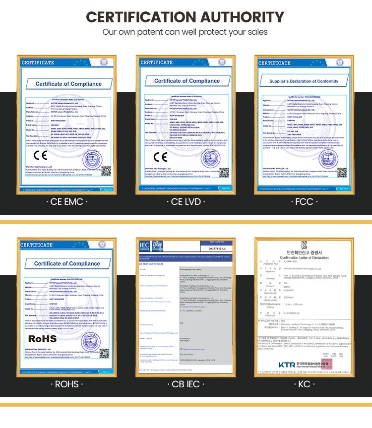 A:We have CE, RoHs ,FCC certificates for products, CE , UL,KC, ETL approved adaptor, ISO9001 for factory , MSDS for battery