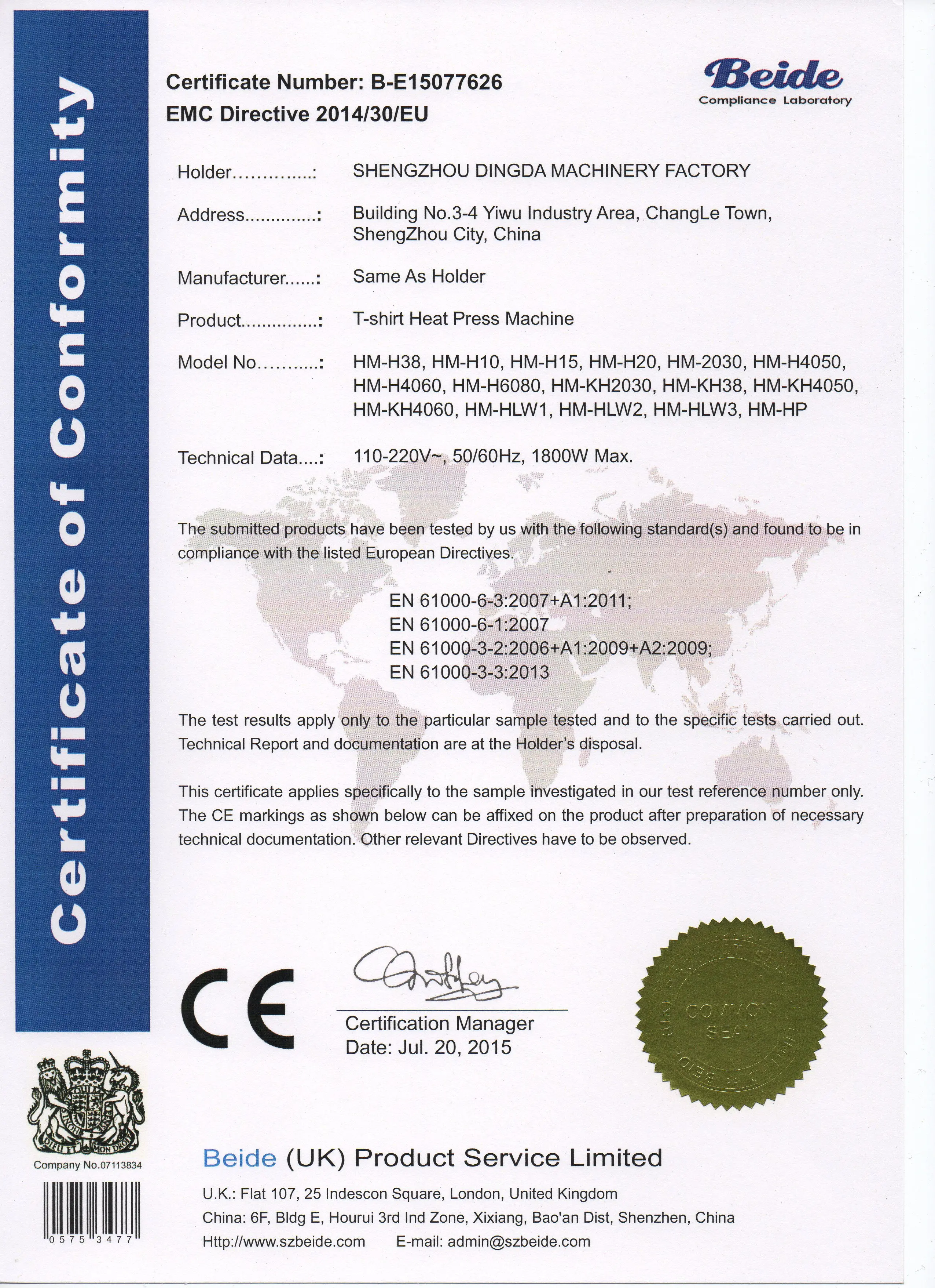 Certification | CE |