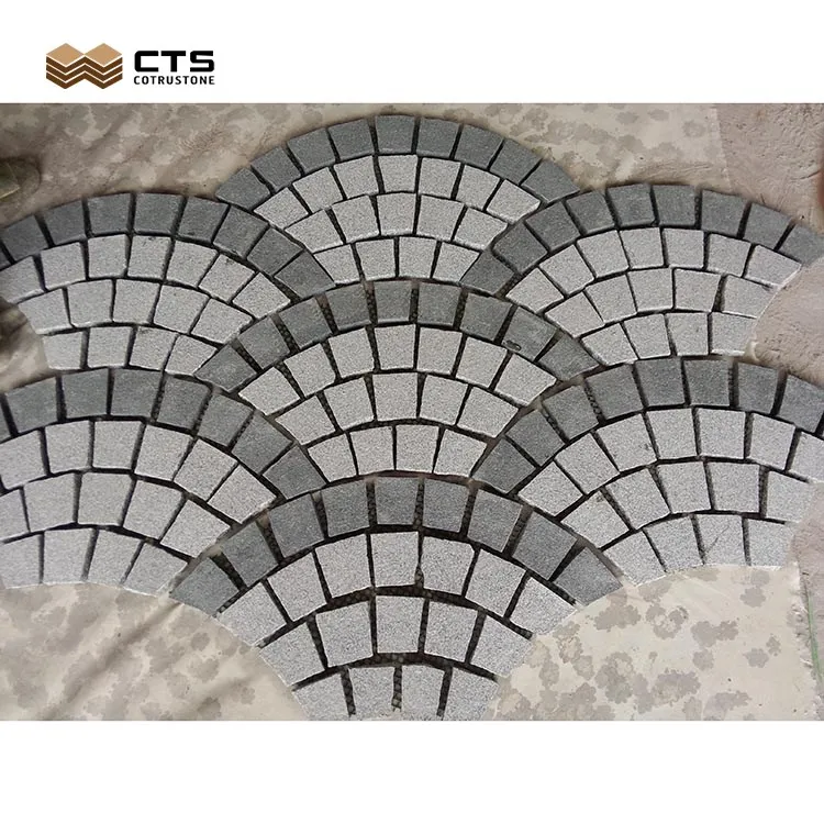 В форме веера черный гранит булыжник камень на сетке