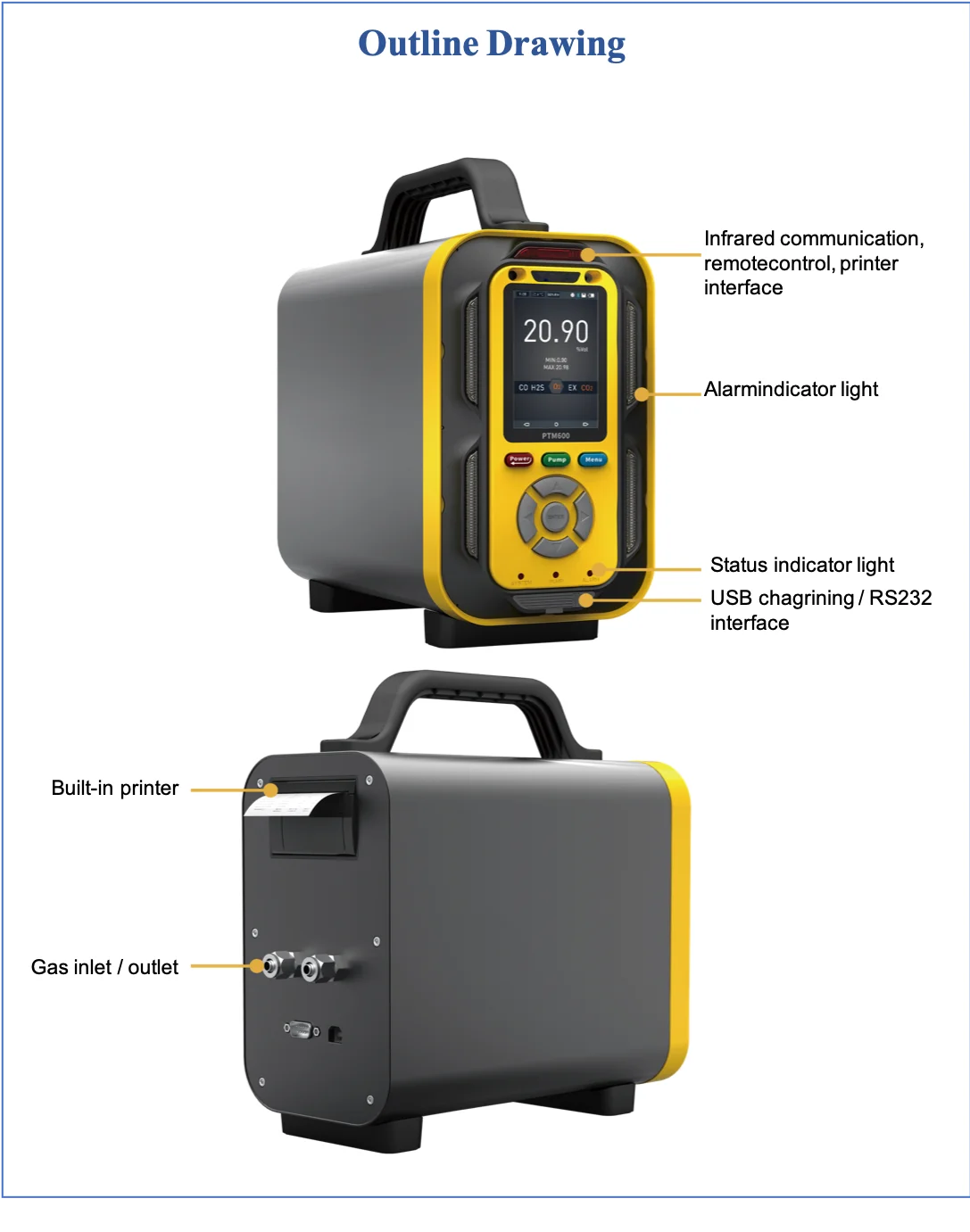 Optional items | Temperature and humidity measurement function, 1.2 m retractable sampling handle (1-10 meter hose, and the standard length is 1 meter), external remote sampling pump, high temperature sampling and cooling filter handle, high temperature humidity pretreatment system, CD-ROM (upper level computer communication software), external mini wireless infrared printer, built-in mini printer, SD card storage, USB disk storage, wireless data communications. |