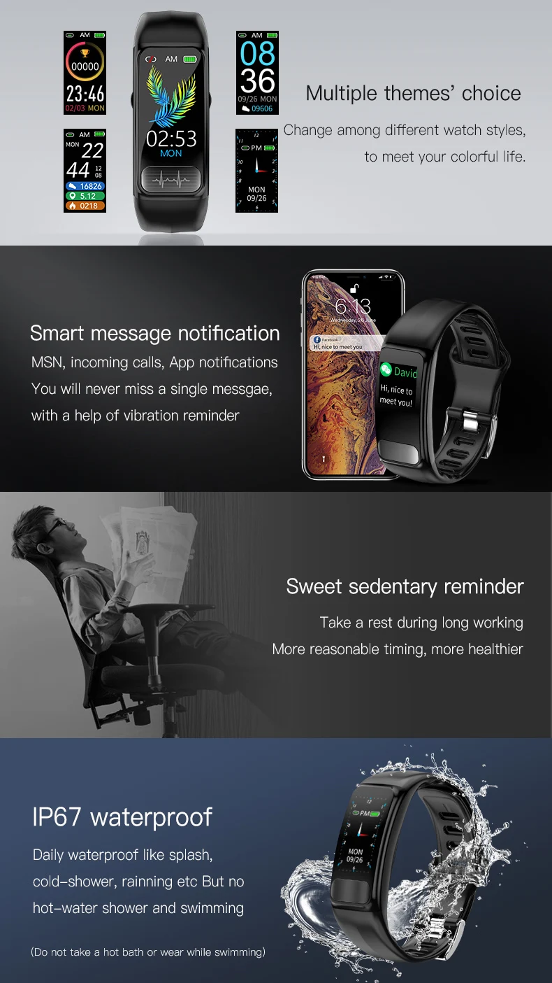 Браслет с отслеживанием показателей здоровья 105 мА/ч, ремешок из искусственной кожи спортивный смарт-браслет с монитором сердечного ритма крови монитор для IOS8.2 + Android 4,0 US $19.55