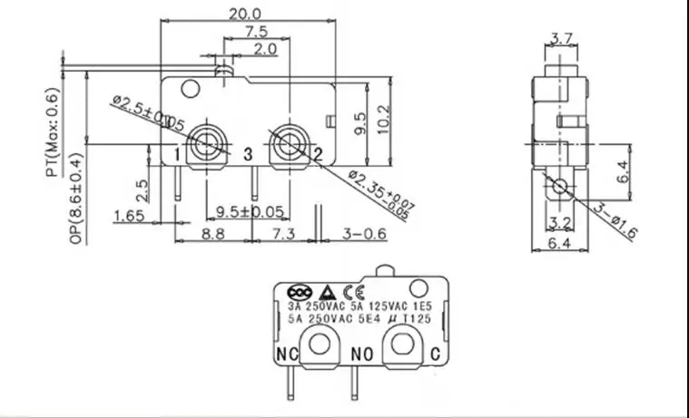 KW12-A-1 contact button switch 5A125V limit switch