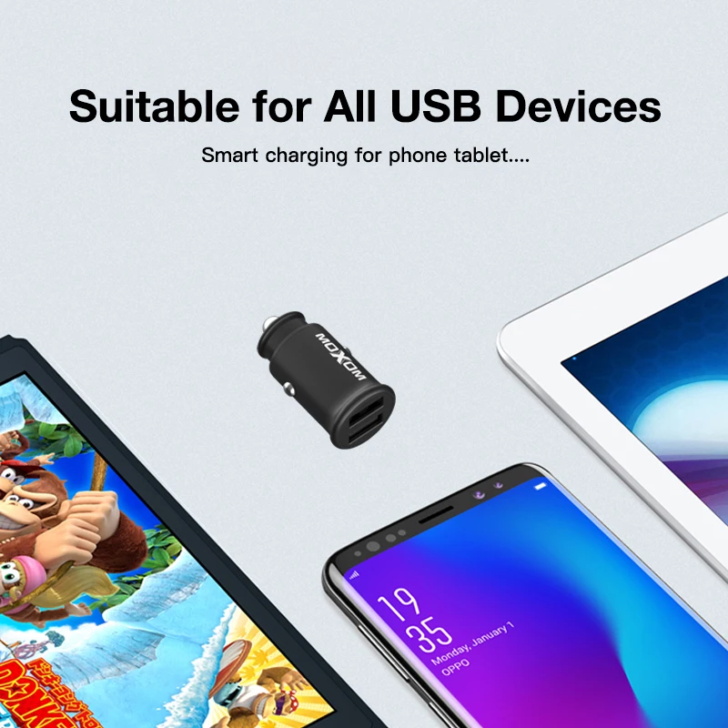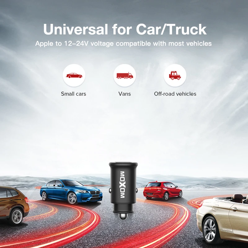 Название продукта | MOXOM Быстрая зарядка USB Автомобильное зарядное устройство 4.8A Макс автомобильный адаптер с мини размером двойной порт для iPhone XR/Xs макс |