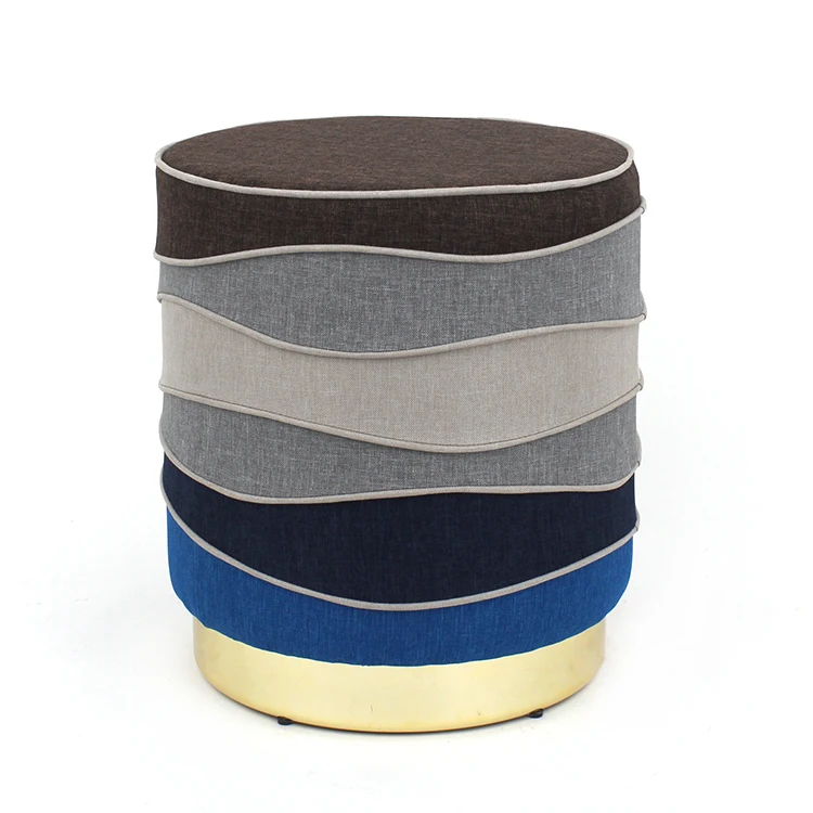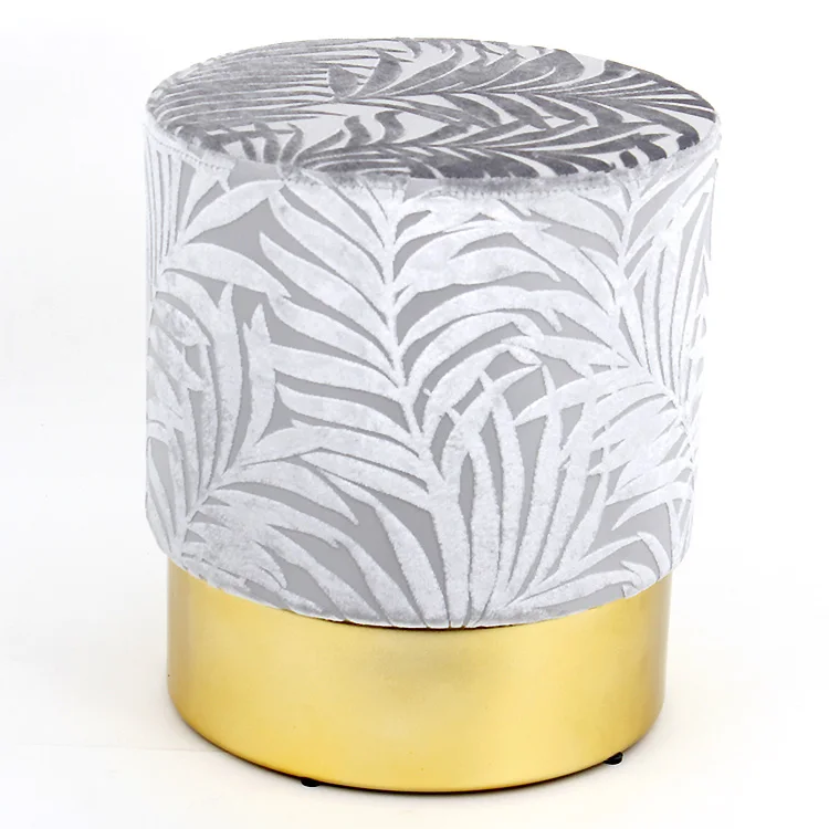 Индивидуальный OEM круглый османский пуф с золотой металлической основой из нержавеющей стали тканевый пенопластовый стул современная мебель для