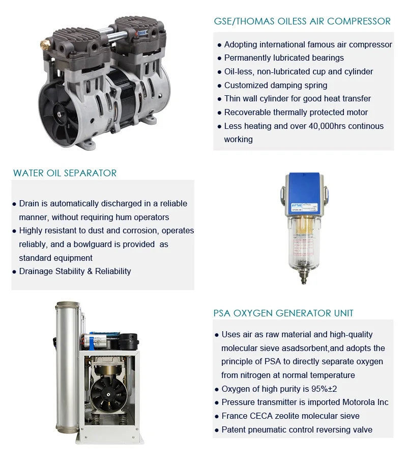 1. Using pressure adsorption method, it can provides large flow, high concentration of oxygen.