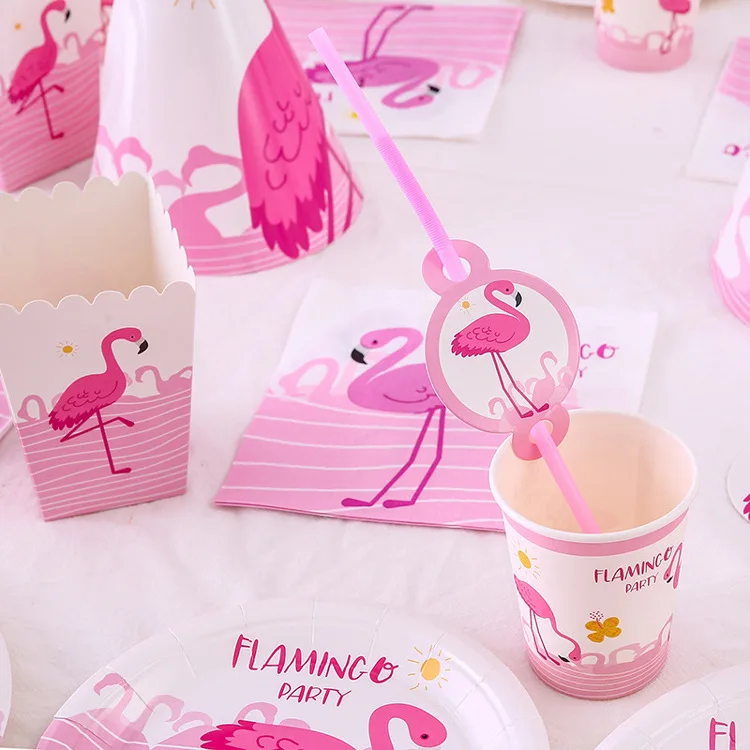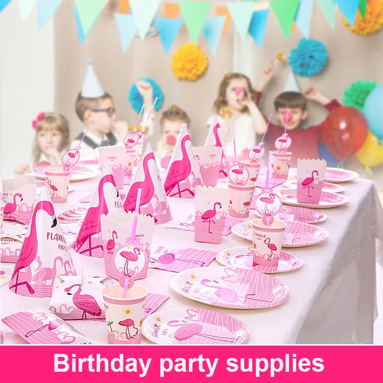 Children birthday party decorations flamingo Theme Disposable Tableware party supplies set