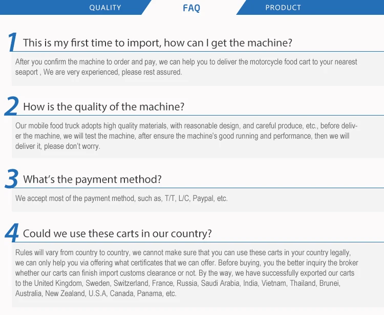 Могут быть настроены, такие как холодильник, морозильник, фритюрница, гриль, хот-дог, поп кукуруза, Exhuast капот и т. Д. |