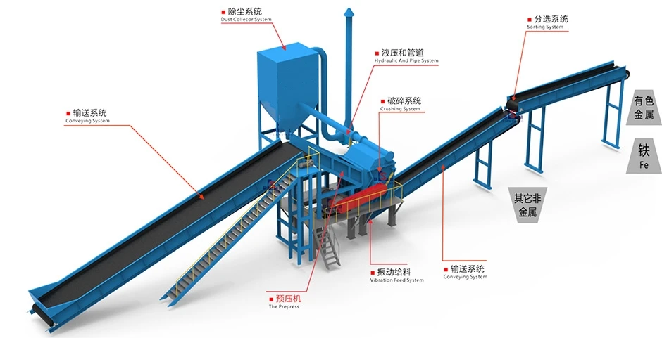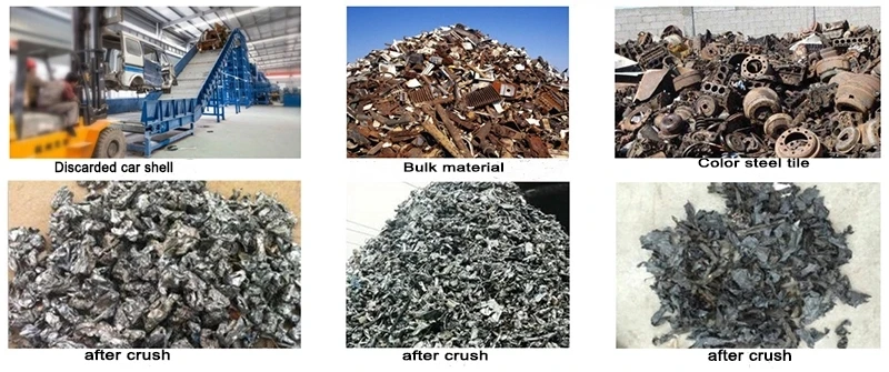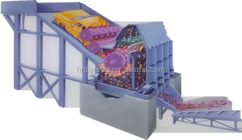Лом сталиДробилкаИспользует кинетическую энергию, сгенерированную двигателем высокой скорости вращения ротора молоток для измельчитель отходов сталь для того, чтобы получить чистый стальной материал с определенного размера. Во время измельчения обработки, ржавчины и краски на поверхности будут удалены, а также и минеральные материалы будут раздельной магнитной системы