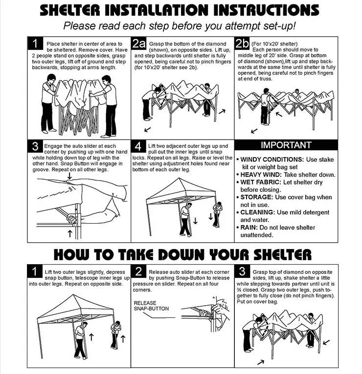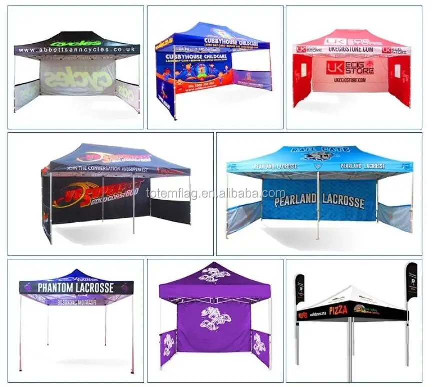 Feature: | - Pop up party tentsand event shelters - Easily extendable legs - Flameproof and waterpoof fabric - Reinforced fittings - Quality reliable hardware - Option carry bag and tie downs - 420 Denier / 600 Denier Top/Back/Side Walls |