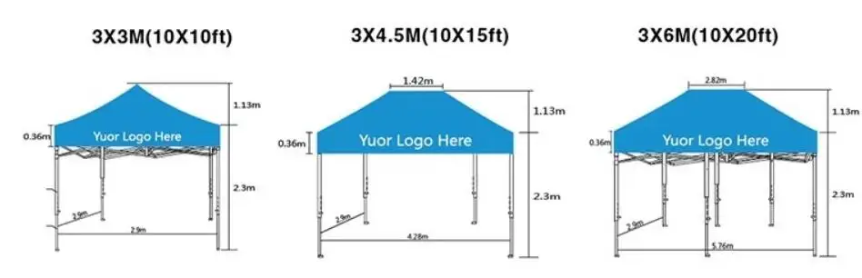 Standard size: | 3mx3m (10'x10') 3mx4.5m (10'x15') 3mx6m (10'x20') Customized sizes are available. |