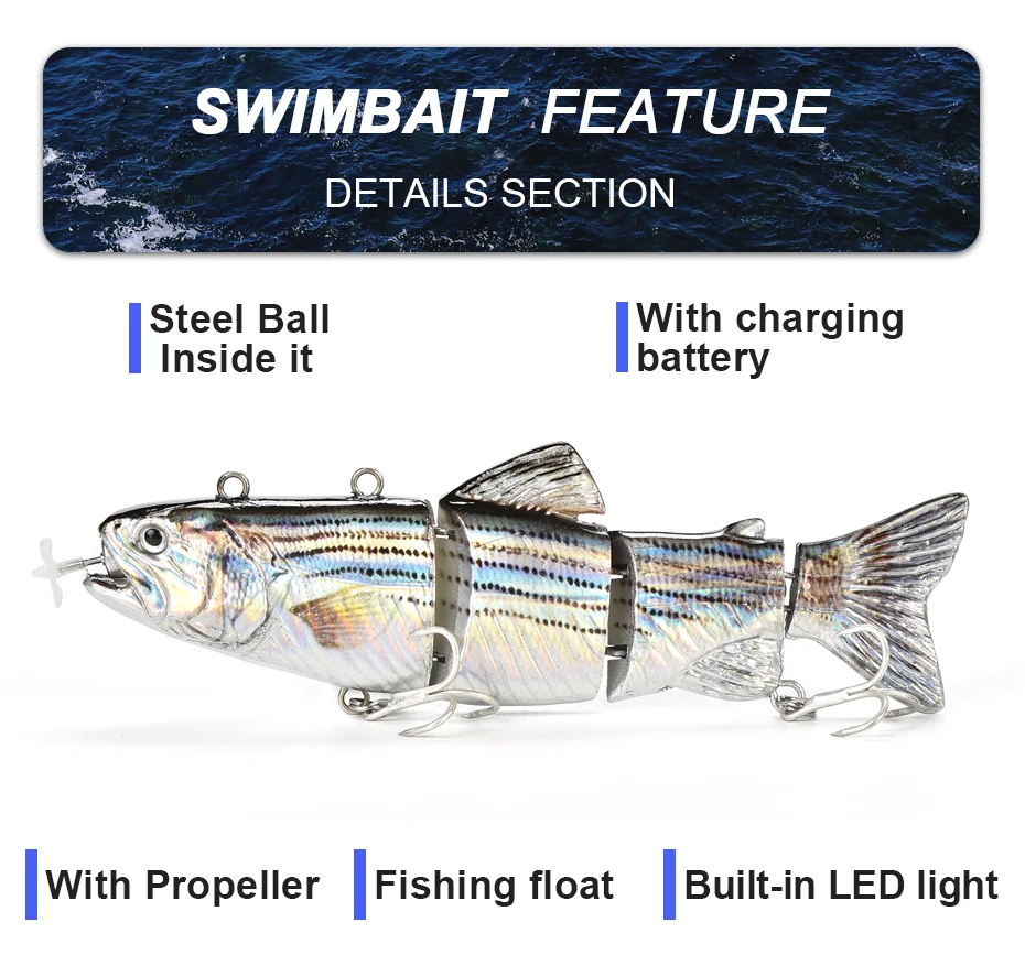 The swim bait can fish 15kgs(33LBS), it connected with metal,and also depends on the experience of fisher.
