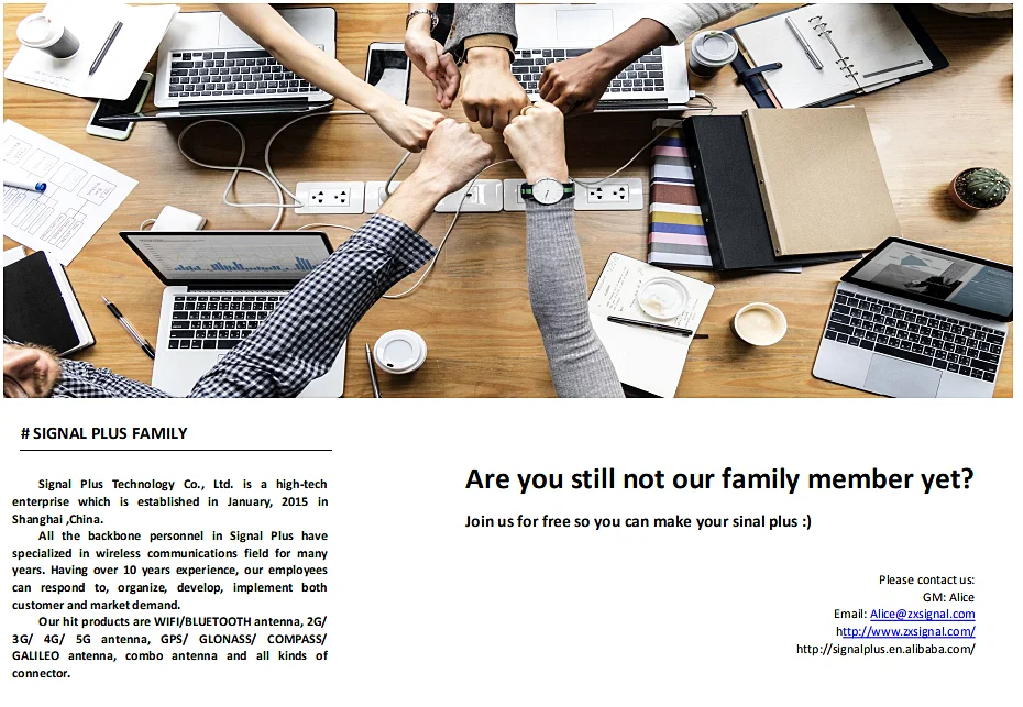 Our hit products are WIFI/BLUETOOTH antenna, 2G/ 3G/ 4G/ 5G antenna, GPS/ GLONASS/ COMPASS/ GALILEO antenna, combo antenna and allkinds of connector.