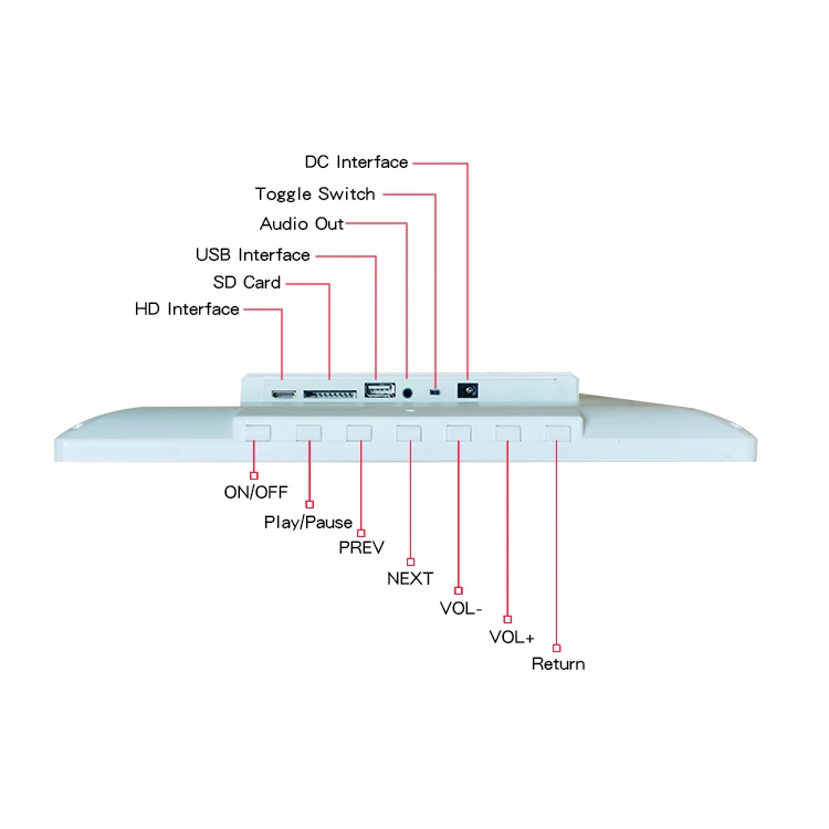 Functions | Built-in clock, alarm clock, google calendar,weather report. OSD language English/Spanish /French /Italian /German...etc. Time-power-off support Auto-play and loop playback | |
