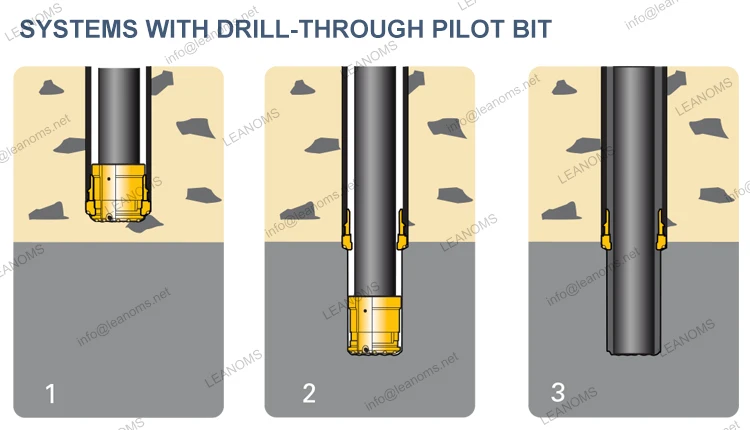 2.Drill through pilot bit is unlocked from ring bit and after that pilot bit drills a rock socket Drill string is pulled out from the hole