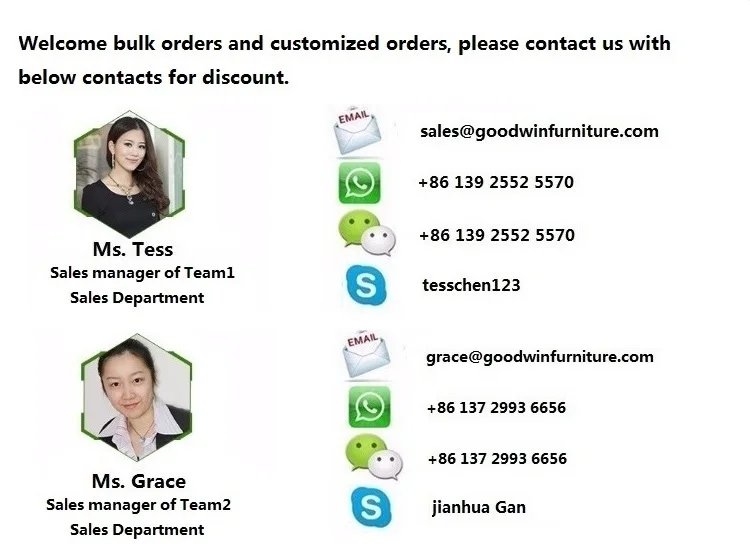 4. Когда будет доставлен мой заказ? И когда дойдет до нашей двери? Все наши мебельные изделия имеют расчетное время доставки 7 ~ 30 дней. Если у нас есть запас, доставим товар в течение 7 дней, если не имеется в наличии доставим товар в течение 30 дней. Обычно это занимает 25 ~ 45 дней после плавания к вашей двери. |