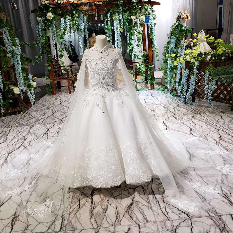 LS00169 high neck heavy applique girls flower girl dresses gown for kids wedding dresses
