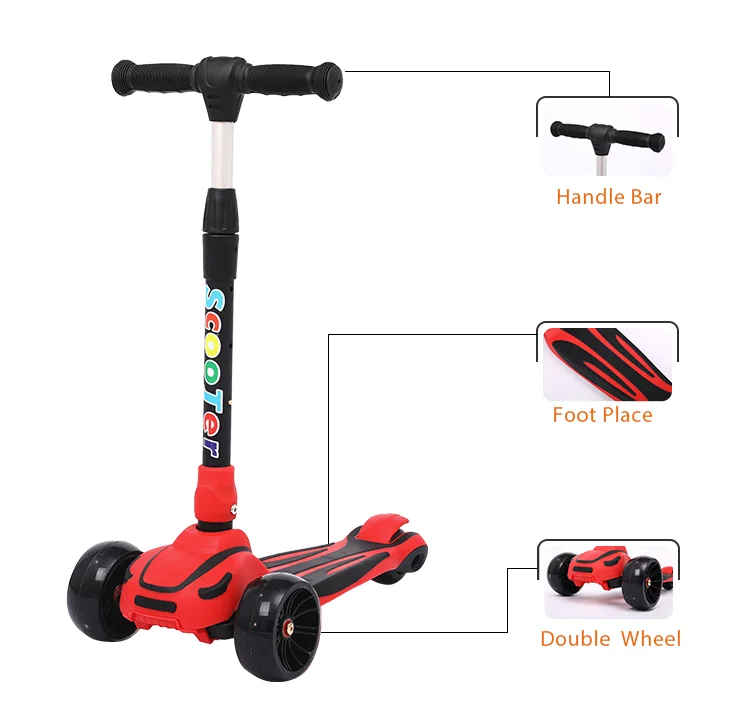Высокое качество складные 3 колеса самокат резина детская ручка ножка колесных скутера дети светодио дный