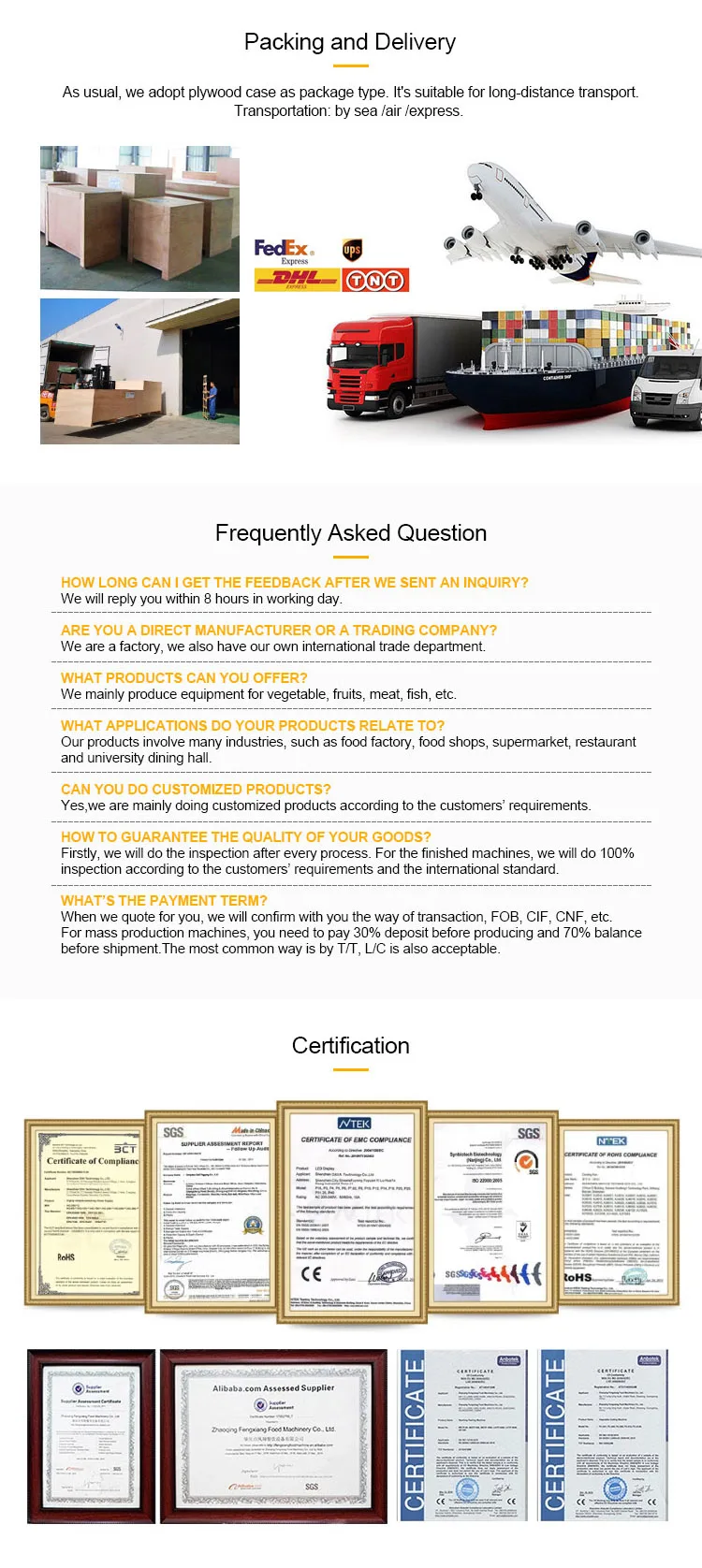Delivery Time: 3-6 workdays after receiving payment(we have machines in stock)