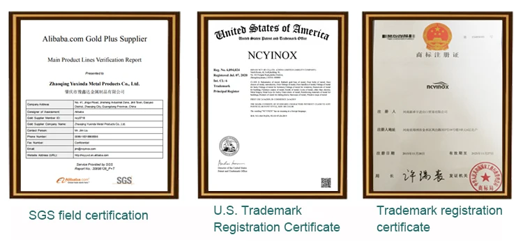 Yuxinda Metal Products Co., Ltd. is committed to strict quality control, such as raw material and thickness inspection as well as product factory testing. We have passed IOS9001 quality management system certification, and has passed SGS certification and Alibaba team field inspection for five consecutive years. Our goal is to "get the same quality at the lowest price, and get the same price with higher quality". Welcome to visit our company and hope to cooperate with you