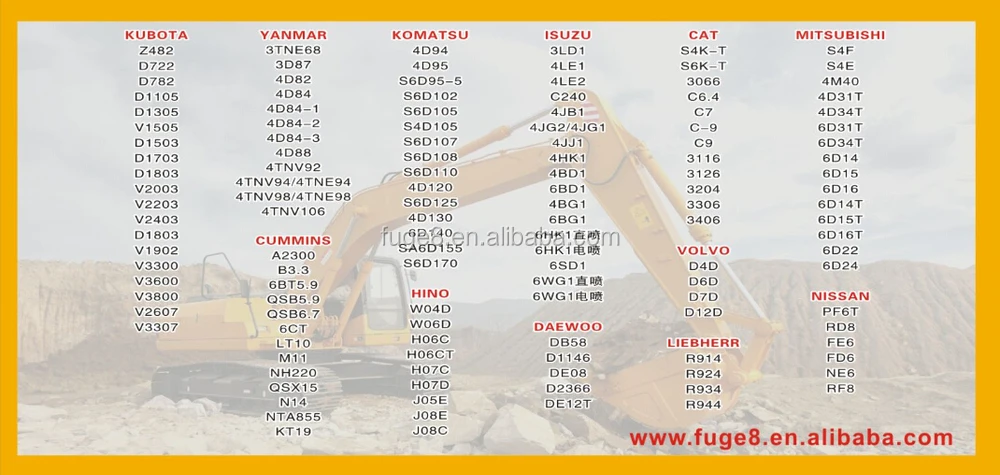 Used for | Excavator engine parts |