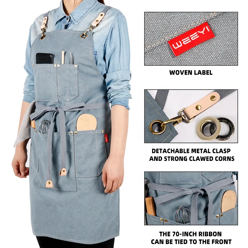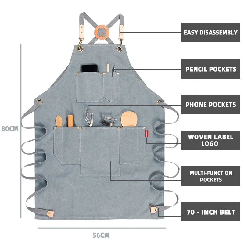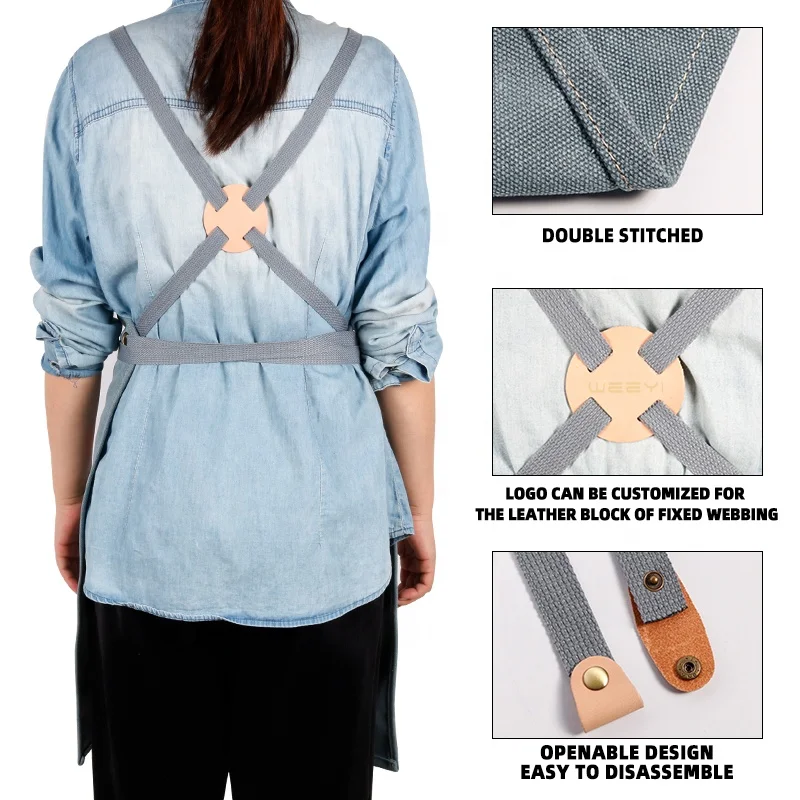 CROSS BACK ADJUSTABLE STRAPS - The cross back strap design reduces neck strain that standard aprons cause and ensure the apron will stay in place while you work, cook, garden, paint, grill, etc. Extra long adjustable straps allow this apron to fit men and women of most sizes