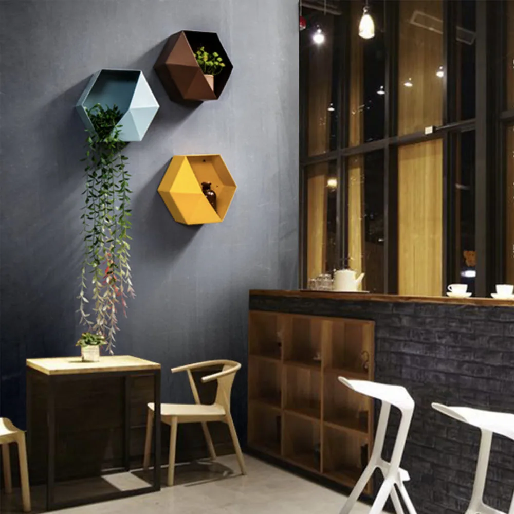 Floating Shelves Wall Mounted Various Colors Hexagon Geometric Home Decor Hanging Shelf Wooden