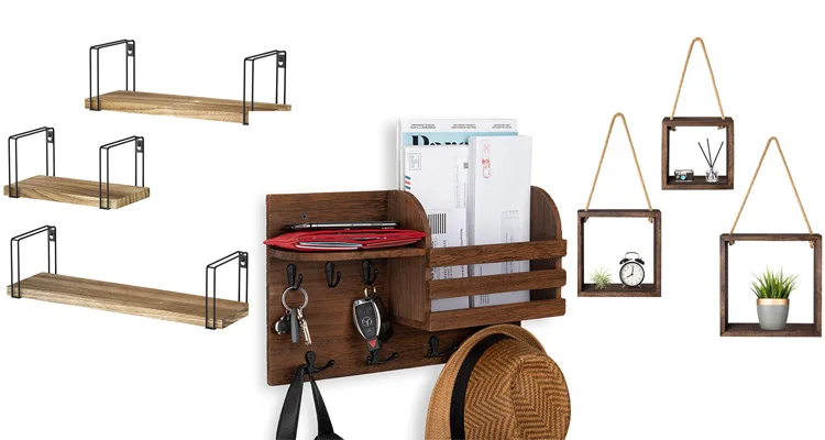 Wall Corner Shelves Floating Corner Shelf Set of 2 Rustic Wood Floating Multi-purpose Storage Shelves | ||