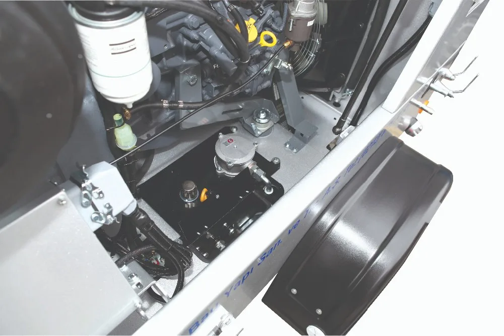 The optimal design of the hood enables the machine to intake fresh air from the front grille, circulate it over the engine and the compressor, then release it upwards without disturbing or discomforting the operator