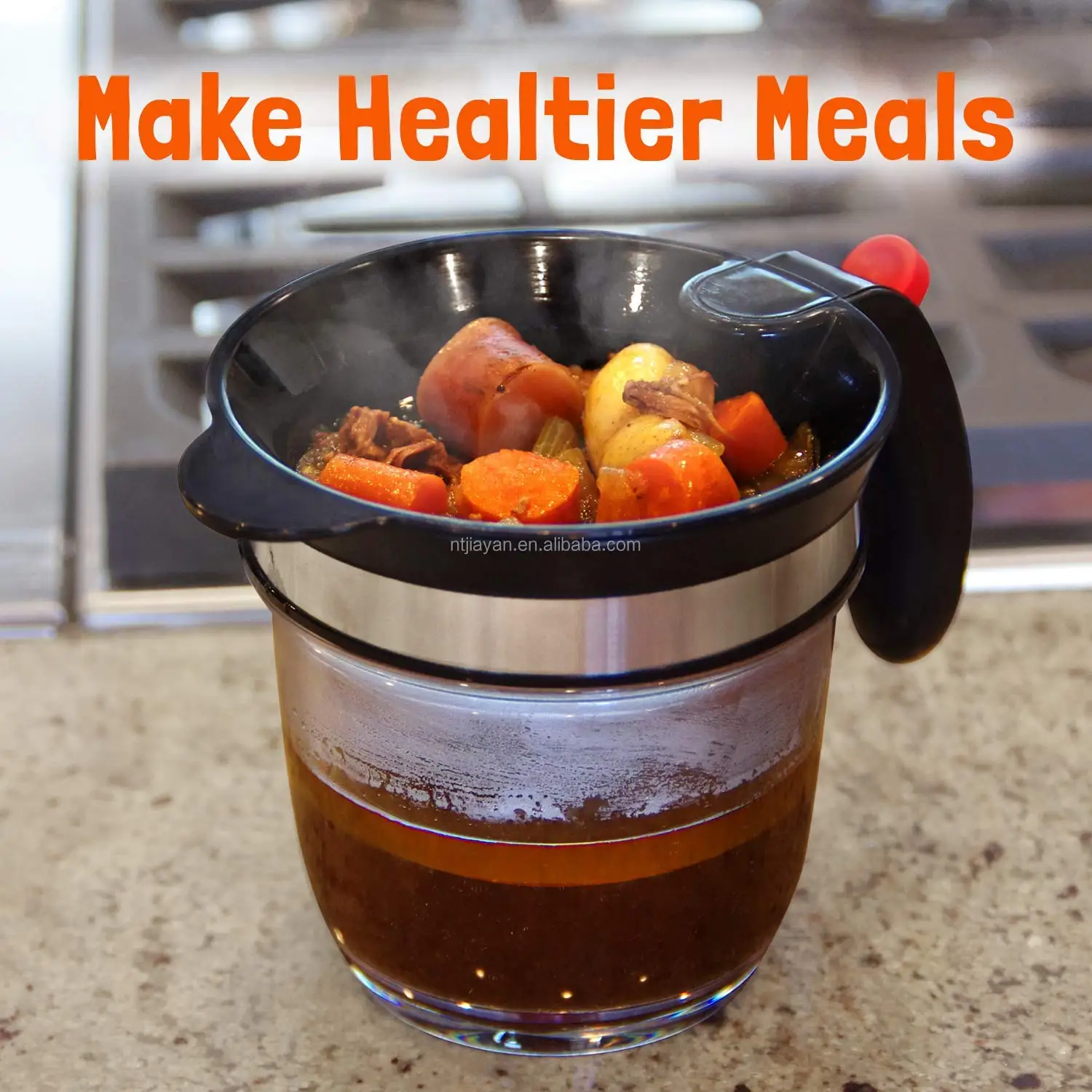 This product reduces unhealthy animal fats while still creating delicious gravy, bone broth and stocks.