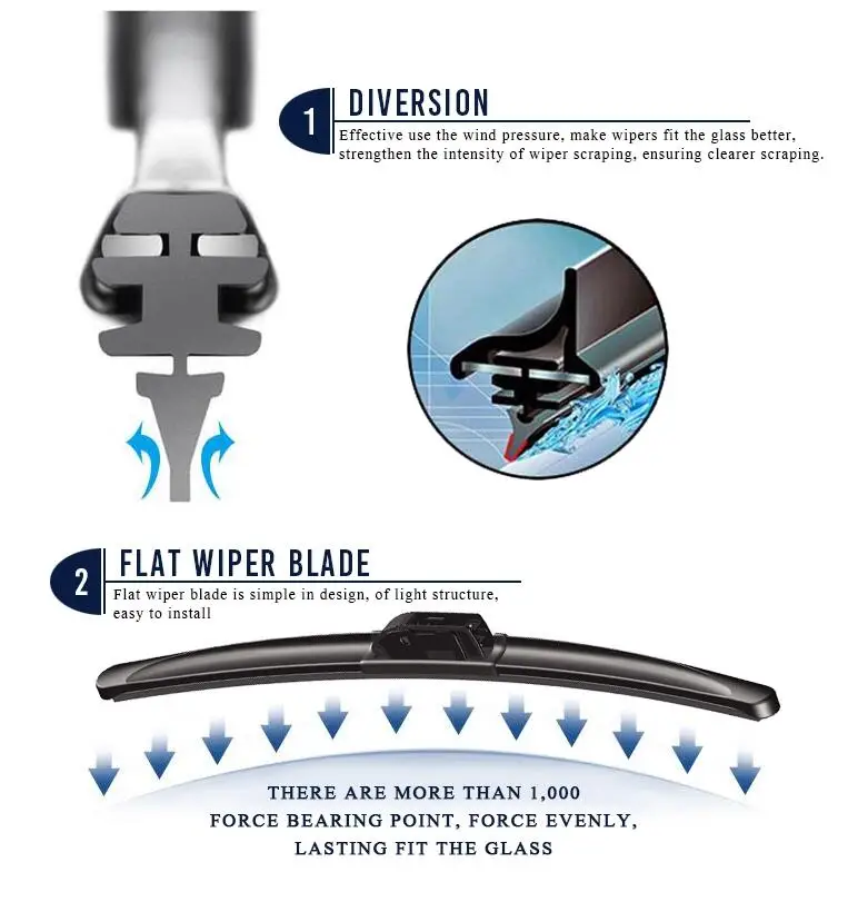 4. Even pressure design, assure a super wiping quality on the whole area of windshield