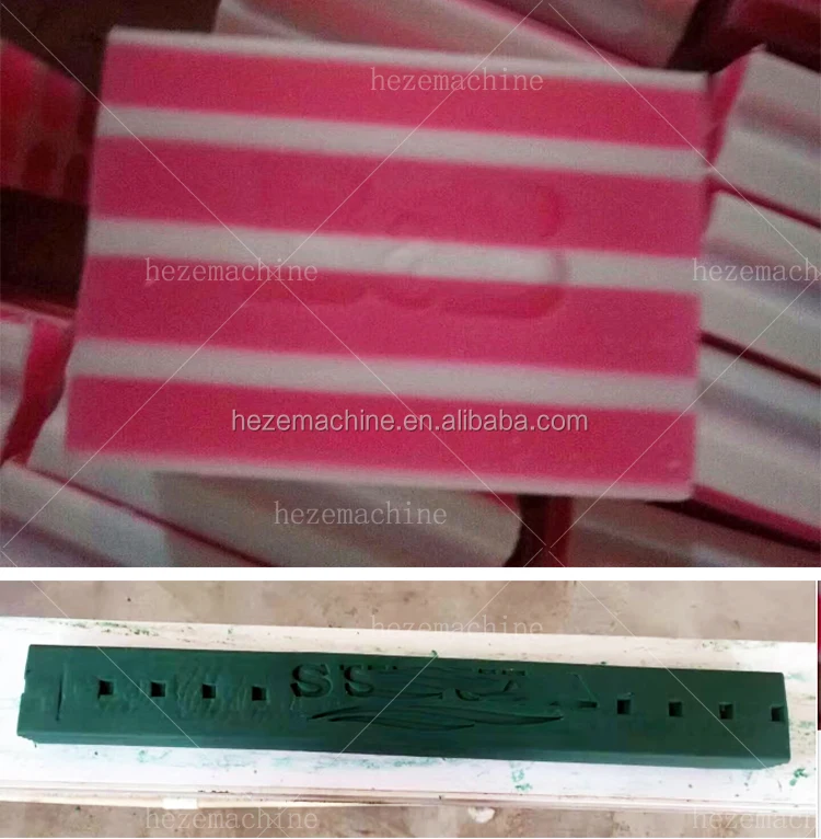 5. Затем мыло с длинной полосой вырезается на мыльницы требуемого размера с помощью режущего станка (есть два вида режущего станка. Один механический. Другой автоматический).