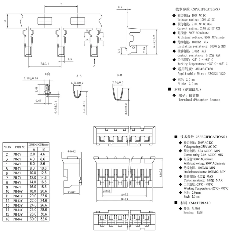 Product Name | PHR-2 Connector 2.0mm Pitch JST PH 2 pin wire harness |