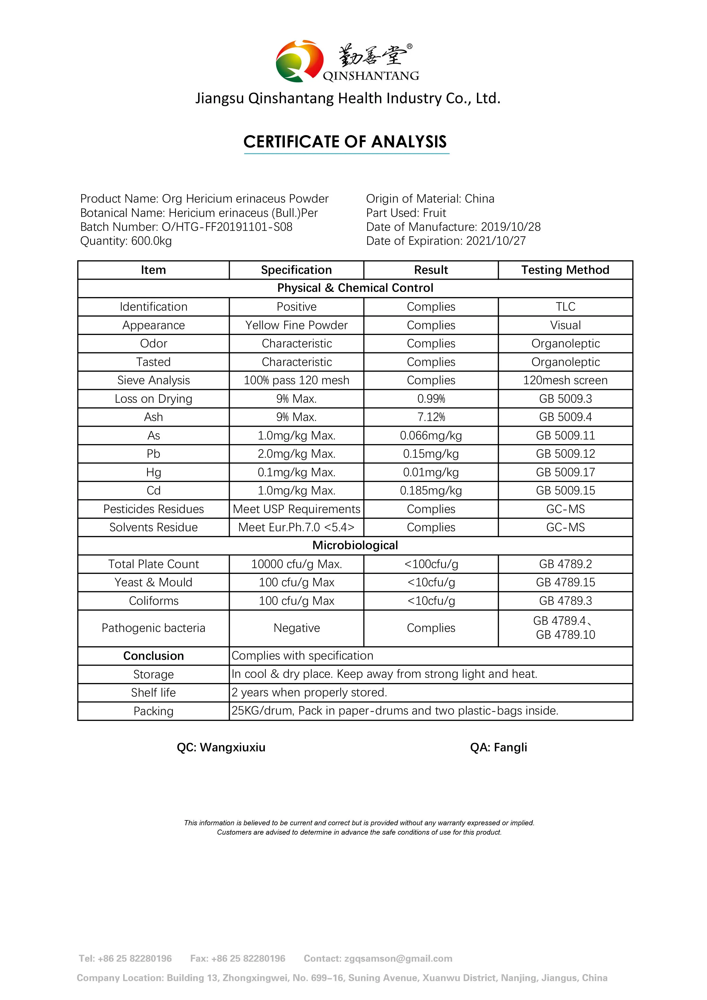 Product | Org Hericium erinaceus Powder--- Mycelium | |||||