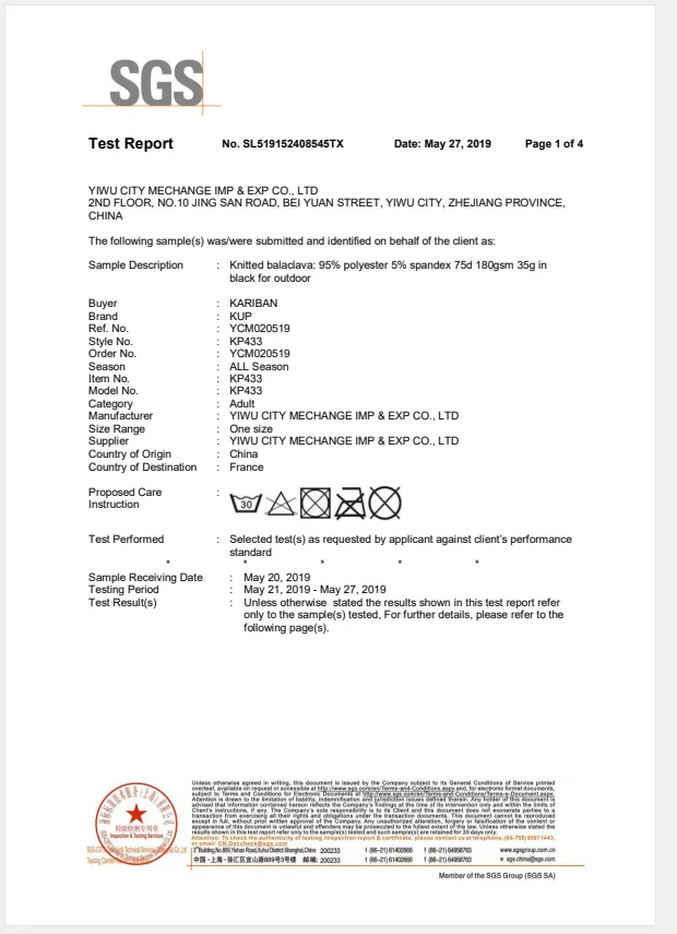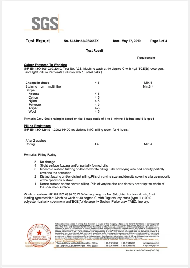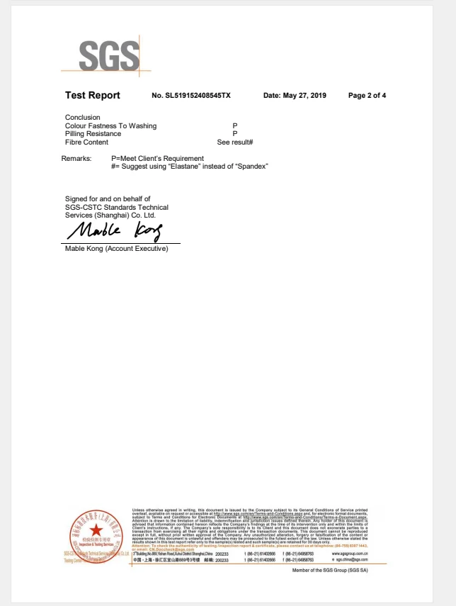 Test Certification | SGS / BSCI / AZO Free / UV / Color Fastness | |