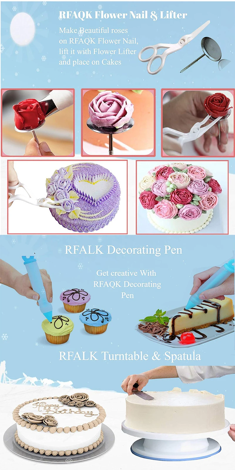clean and tidy. 4.Utility baking tools to decorate your cakes, cupcakes and cookies, suitable for professional use or baking lover